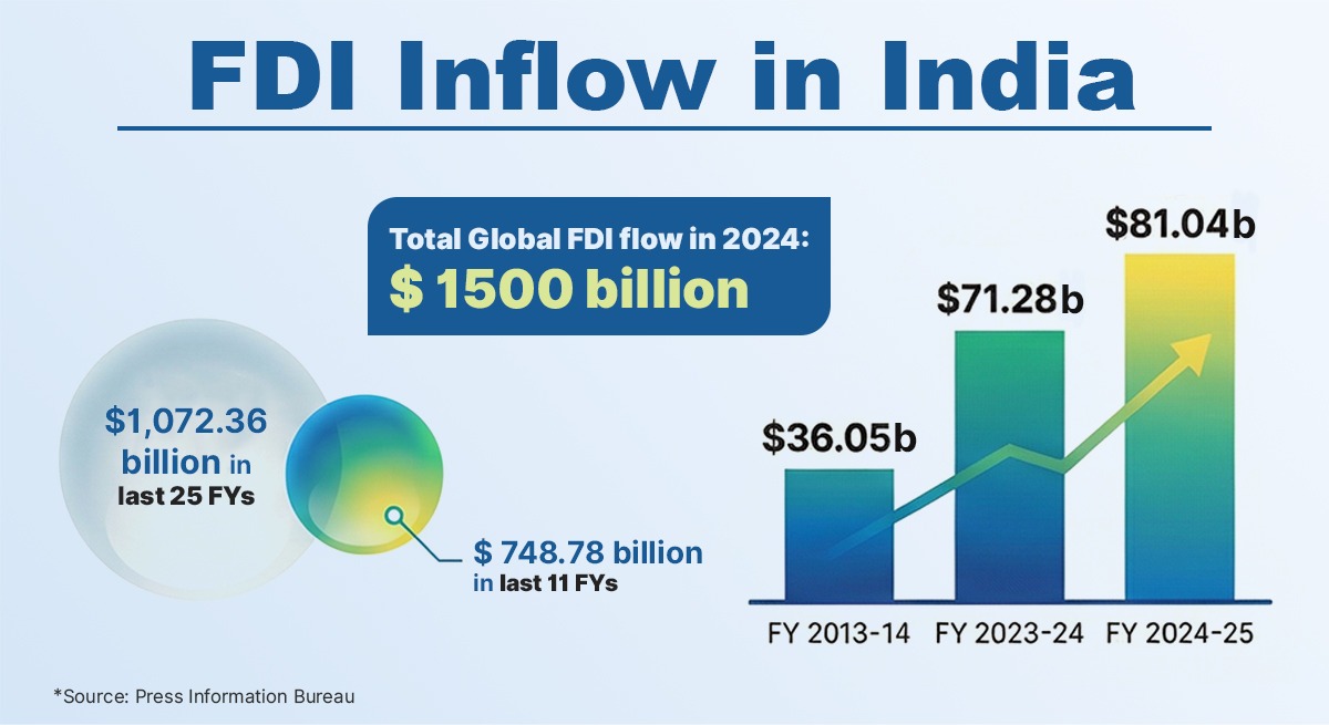 दुनिया के बाज़ार में बड़ी पैठ बनाने के लिए भारत की FDI की ज़रूरत, अतीत में चीन की तरह ही, बहुत ज़्यादा है। 15 साल पहले, तत्कालीन प्रधानमंत्री मनमोहन सिंह ने भारत के इंफ्रास्ट्रक्चर को आधुनिक बनाने की लागत $1 ट्रिलियन बताई थी। अब यह काफी बढ़ गई है, हालांकि सटीक आंकड़े मिलना मुश्किल है।