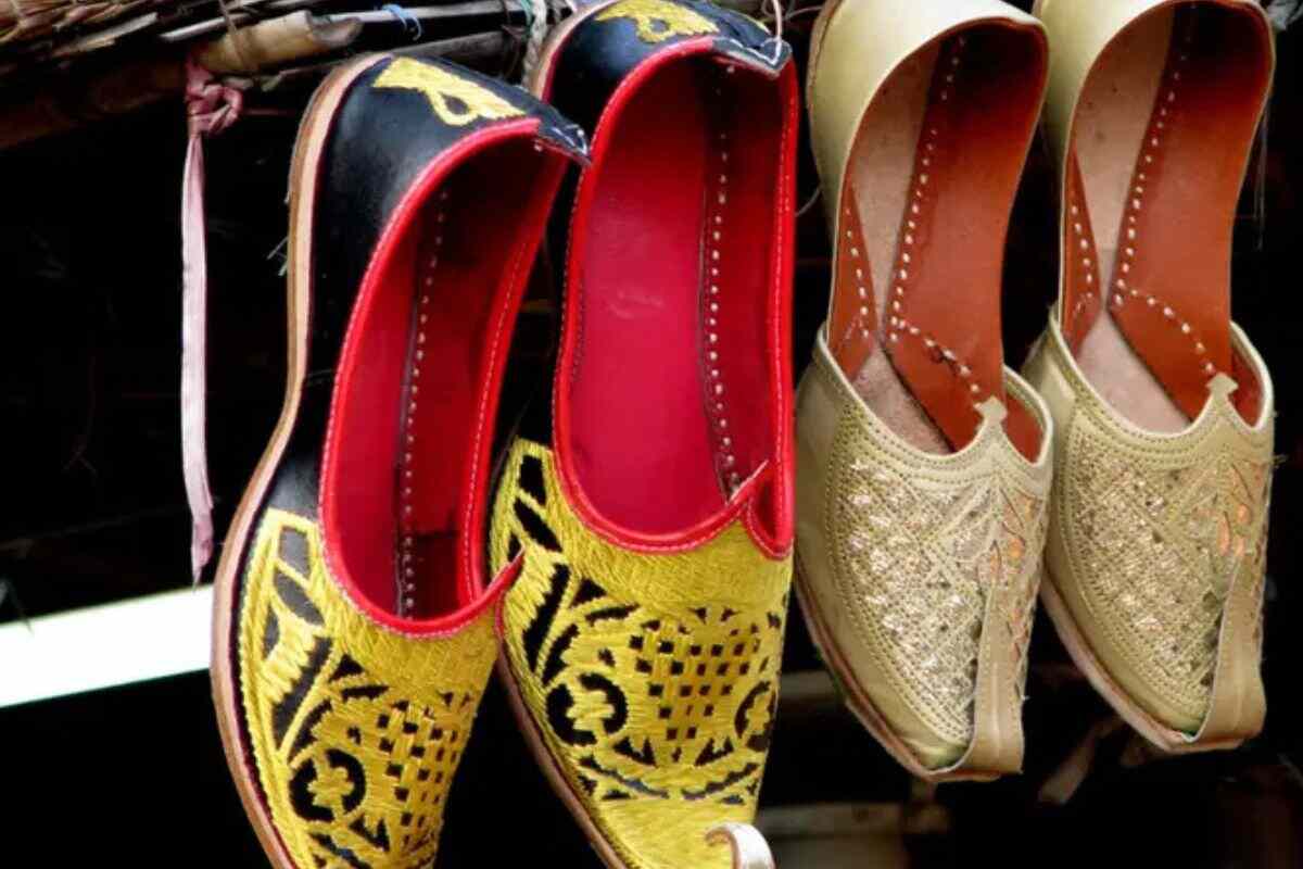 यही सब मिलकर जूती को शाही लुक देता है। इसके बाद ऊपर के हिस्से को मोटे चमड़े या रबर के तले के साथ सिलाई या गोंद की मदद से जोड़ा जाता है। जूती का आगे की ओर हल्का मुड़ा हुआ नोकदार सिरा ही इसकी सबसे बड़ी पहचान है। एक जोड़ी जूती बनने में कई दिन और कभी-कभी हफ़्तों भी लग जाते हैं।