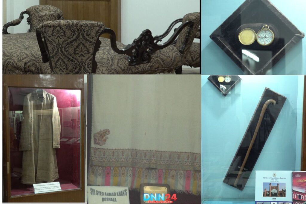 Sir Syed Day पर Exhibition का आग़ाज़ होता है। उनके कमरे में कीमती चीज़ों में शुमार ख़त, Photographs और Campus life sir Syed period की तस्वीरें मौजूद है, जो शीशे के फ्रेम में महफ़ूज़ है। लोग इनको देखकर सर सैयद के ज़माने को तरोताज़ा करते है। सर सैयद ख़ां के चाहने वालों के लिए ये किसी तोहफ़े से कम नहीं है।