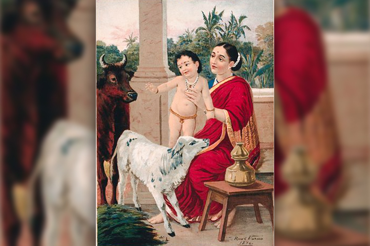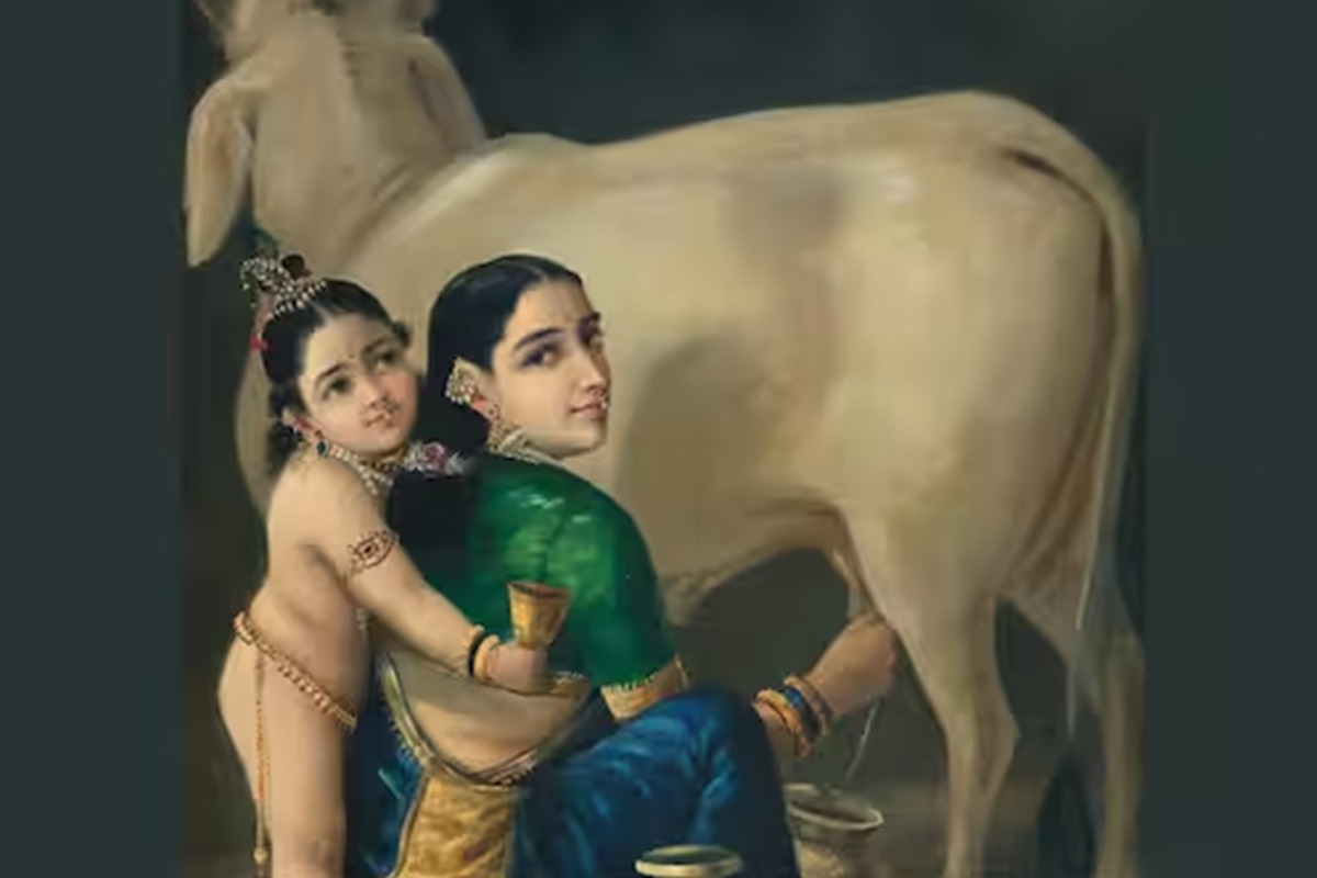 - लाइट का गेम: रवि वर्मा ने यूरोपीय शैली की ‘चिरोस्कूरो’ (Chiaroscuro) तकनीक का इस्तेमाल कर यशोदा के आंचल और गायों के झुंड पर रोशनी का जादू बिखेरा है।